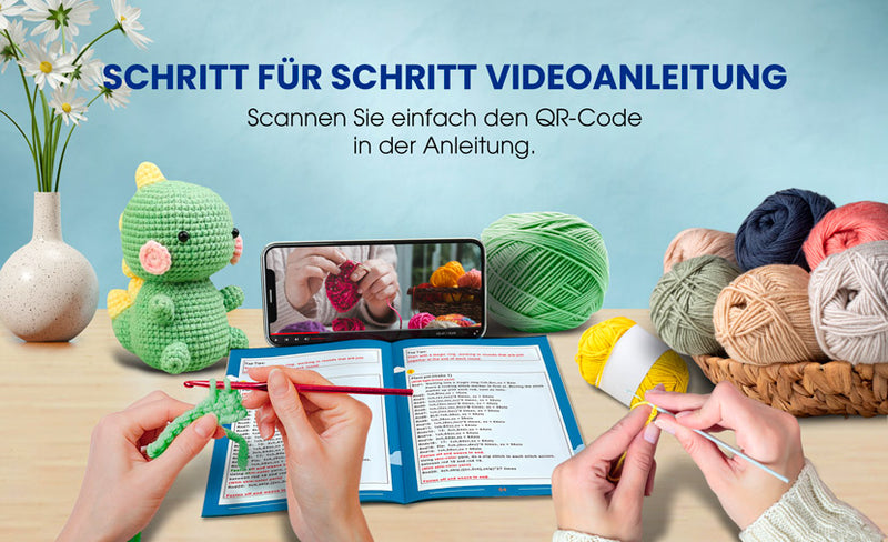 Schritt-für-Schritt-Anleitungsvideos durch den gesamten Häkelprozess. Detaillierte Erklärungen verdeutlichen jeden Schritt, so dass es einfach ist, mitzumachen. Um auf unsere Videosammlung zuzugreifen, scannen Sie einfach den QR-Code, den Sie in der Anleitung finden.