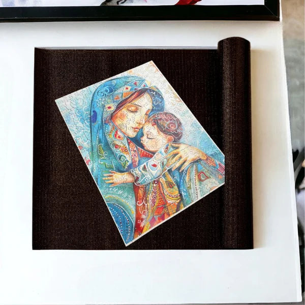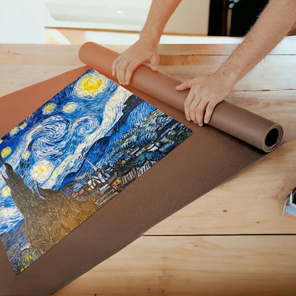 Ideal für alle Puzzle-Liebhaber, die ein Puzzle nicht in einer Sitzung fertigstellen können. Sogar die zufälligen Teile an den Seiten bleiben an ihrem Platz. Der Filz muss gedämpft oder gebügelt werden, wenn er offen ist, weil er gefaltet ist.