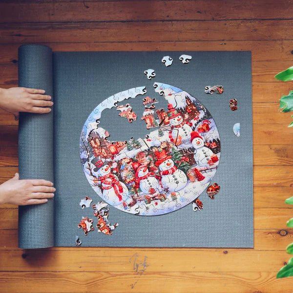 Die Matte rollt sich schön zusammen und hält die Puzzleteile zusammen. Es kann vorkommen, dass sich die Teile nach dem Ausrollen der Matte trennen, aber es dauert nicht lange, sie zu reparieren. Und es ist eine viel bessere Option, als das Puzzle auf dem Tisch liegen zu lassen oder es gar nicht zu machen.