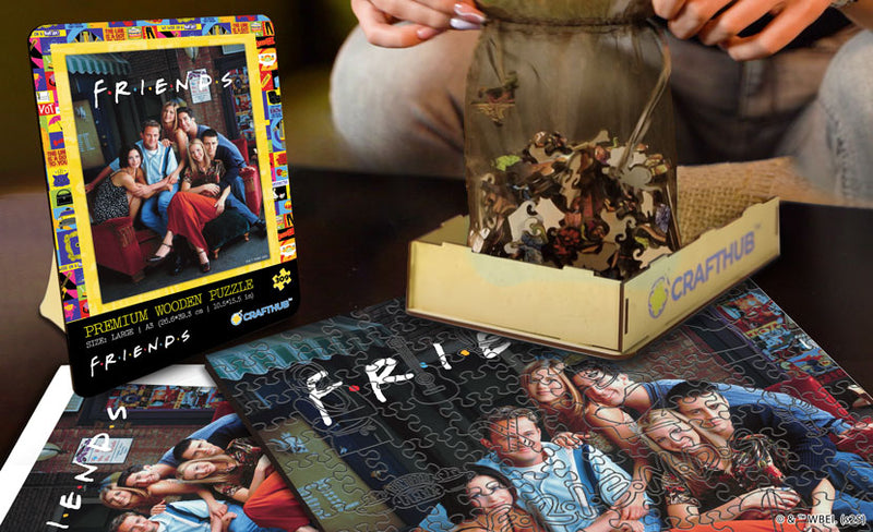 Zelebrieren Sie den Charme der Serie mit Puzzleteilen in Form von ikonischen Charakteren, der Central Perk Couch, einem Truthahn, einer Kaffeetasse und denkwürdigen Zitaten!