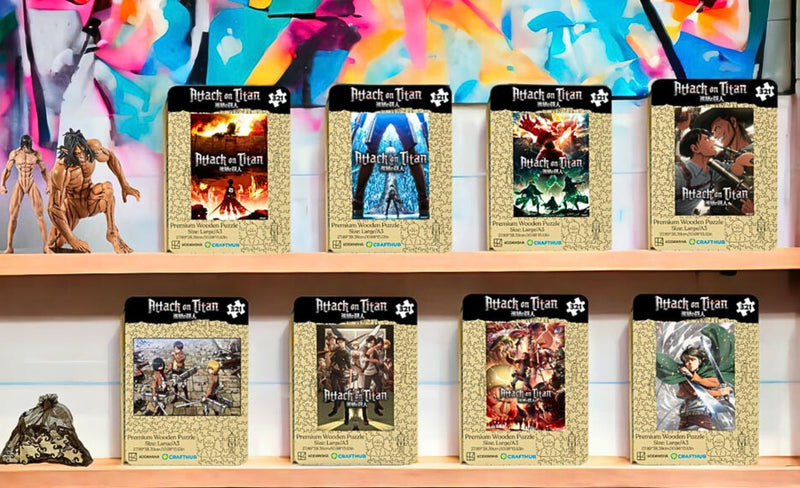 Tauchen Sie ein in die Geschichte mit unseren einzigartigen Puzzleteilen, die Eren, Mikasa und eine Vielzahl beeindruckender Titanen darstellen, darunter The Pure, The Abnormal und The Colossal.