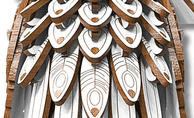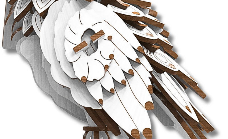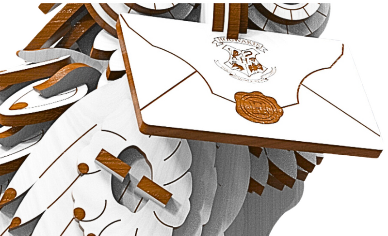 Die geschichteten Teile bilden Hedwigs Federn nach und verleihen ihrem Körper eine realistische Textur und Tiefe.