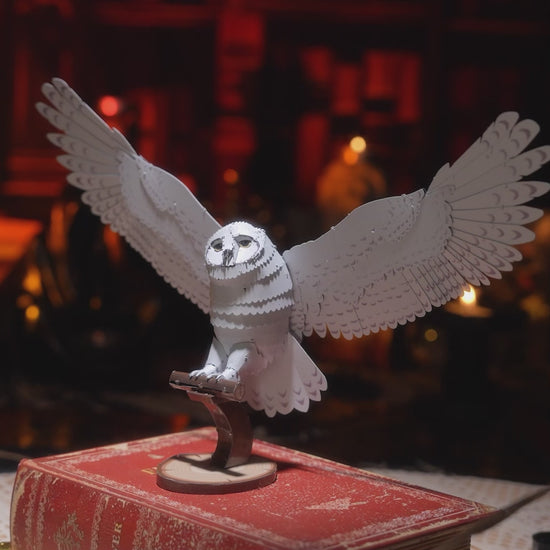 Jede Feder wurde mit lasergeschnittener Präzision dargestellt und für mehr Tiefe übereinandergelegt, um Hedwigs unverwechselbares Aussehen aus den Filmen widerzuspiegeln.