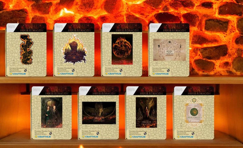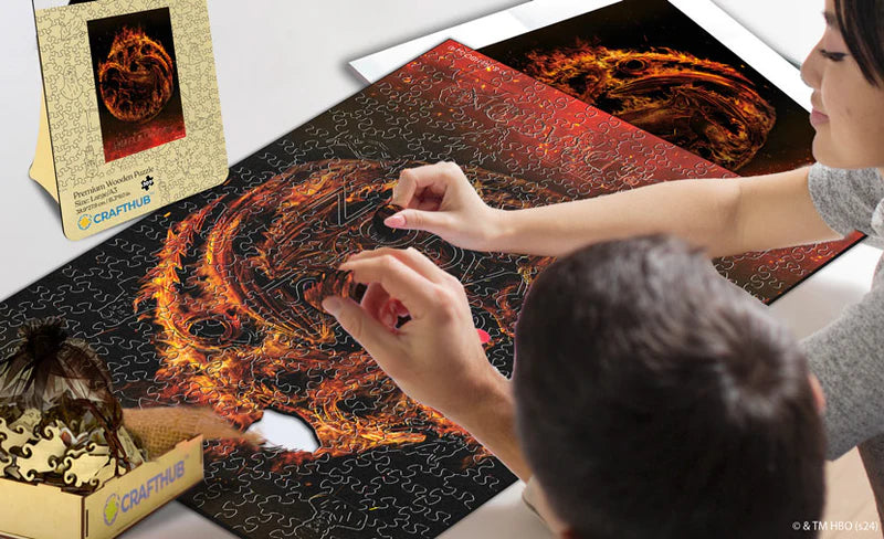 Mit Originalgrafiken direkt aus der Filmquelle der epischen Saga feiert diese Puzzleserie die Verbindung von authentischen „Haus des Drachen“-Bildern mit der feinsten Puzzlekunst.