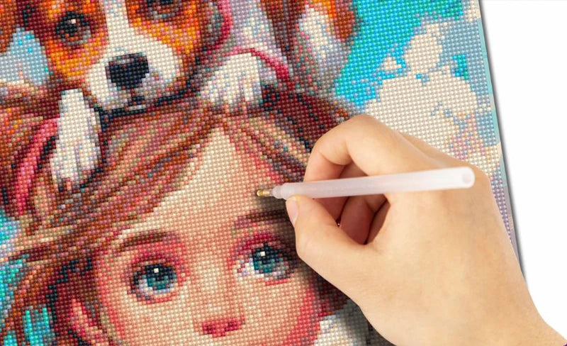 Mädchen mit Welpenhut - Diamant Malset