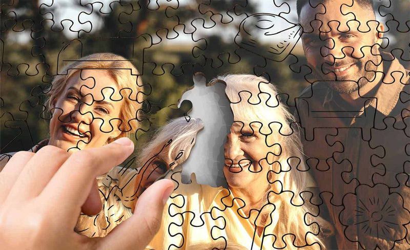 Während Sie Ihr personalisiertes Puzzle zusammenbauen, entdecken Sie einzigartig geformte Teile, die Ihren schönsten Momenten eine verspielte Note verleihen – und so ein Foto, das Sie lieben, in ein spielerisches und bedeutungsvolles Erlebnis verwandeln.