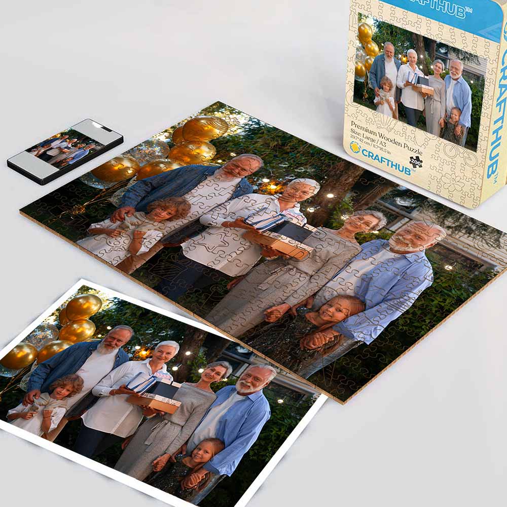 Während Sie Ihr personalisiertes Puzzle zusammenbauen, entdecken Sie einzigartig geformte Teile, die Ihren schönsten Momenten eine verspielte Note verleihen – und so ein Foto, das Sie lieben, in ein spielerisches und bedeutungsvolles Erlebnis verwandeln.